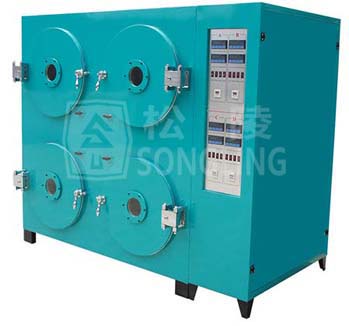 本真空干燥箱是松陵電器研究、開發(fā)的專用于電池極片烘烤的新產(chǎn)品。真空室為圓筒形,便于電池極片整卷裝載,在真空狀態(tài)下烘烤。多個(gè)真空室組合成一個(gè)整體,結(jié)構(gòu)緊湊,節(jié)省工作場地;配置一臺(tái)真空泵抽真空,多個(gè)真空室分別控制加熱,獨(dú)立工作,靈活方便。同時(shí),抽真空系統(tǒng)采用數(shù)顯真空計(jì),自動(dòng)控制真空度的上下限。真空室的外部和中軸均設(shè)置有加熱裝置,并分別配置高精度溫控儀控溫。真空室圓門的中間設(shè)置圓形觀察窗。產(chǎn)品投放市場后,受到了電池極片生產(chǎn)廠家及相關(guān)用戶的好評。